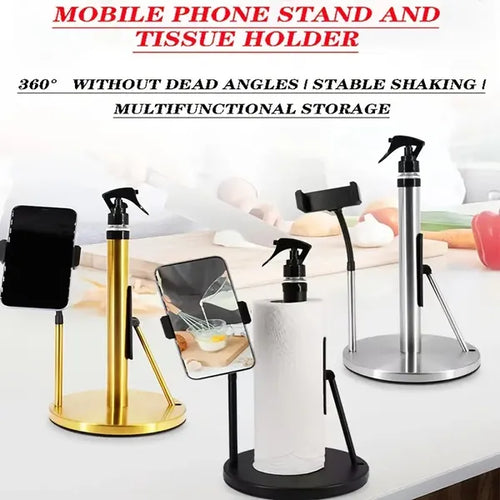 3-in-1 Stainless Steel Stand: Tissue Holder, Foldable Phone Holder, Spray Bottle, 360° Adjustable Arm, 2-minute Installation, Suction Cup Base. A Nice Gift For The Family.